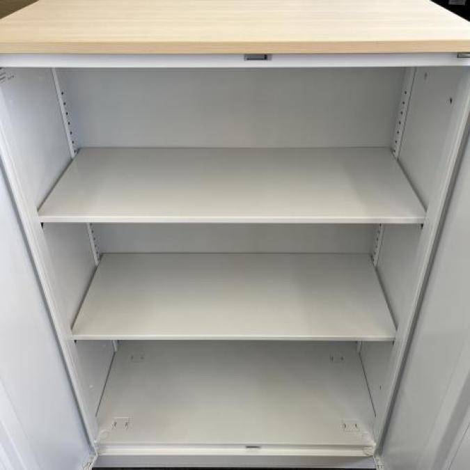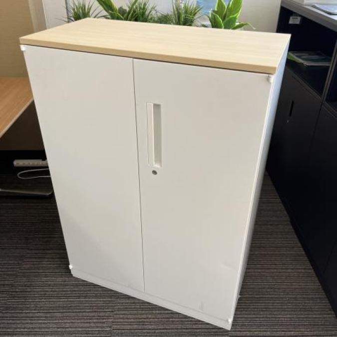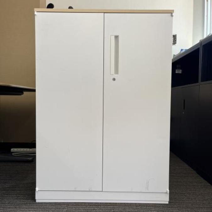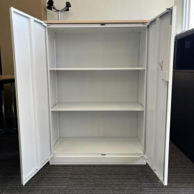 【在庫入替セール品!】人気の観音開きタイプ!取っ手が大きく使い勝手のよい定番キャビネット! ■内田洋行/HSシリーズ/ホワイト 天板ナチュラル