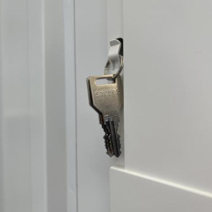 - 扉や引出しに、ラッチ機構を装備。地震時に勝手に扉や引出しが開き、収納物がユニットから飛び出すのを抑制します。
