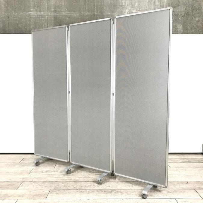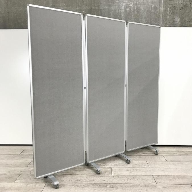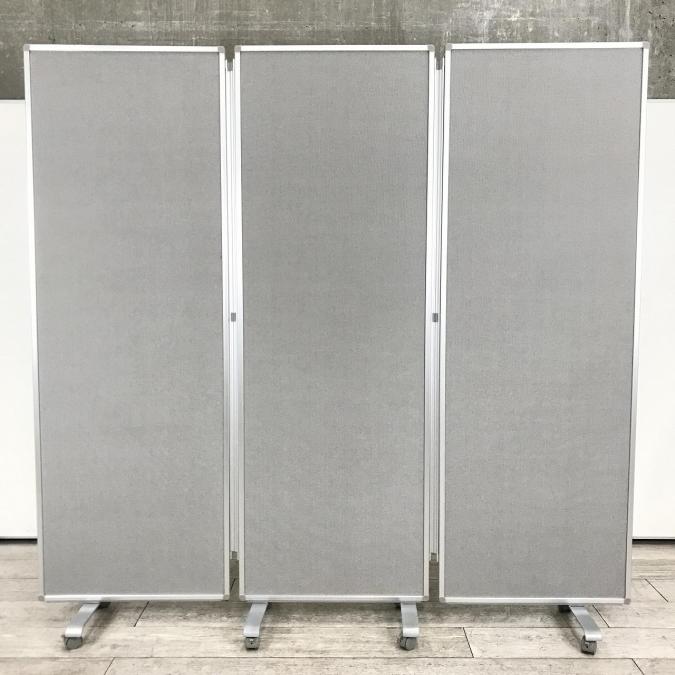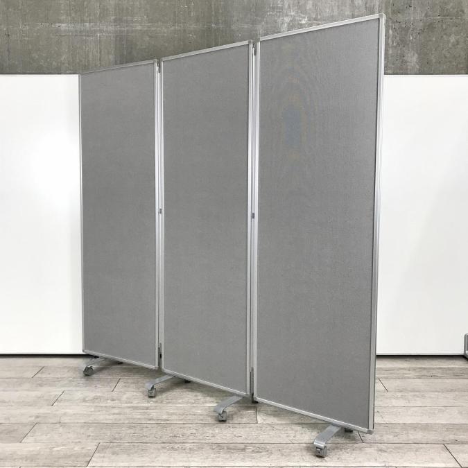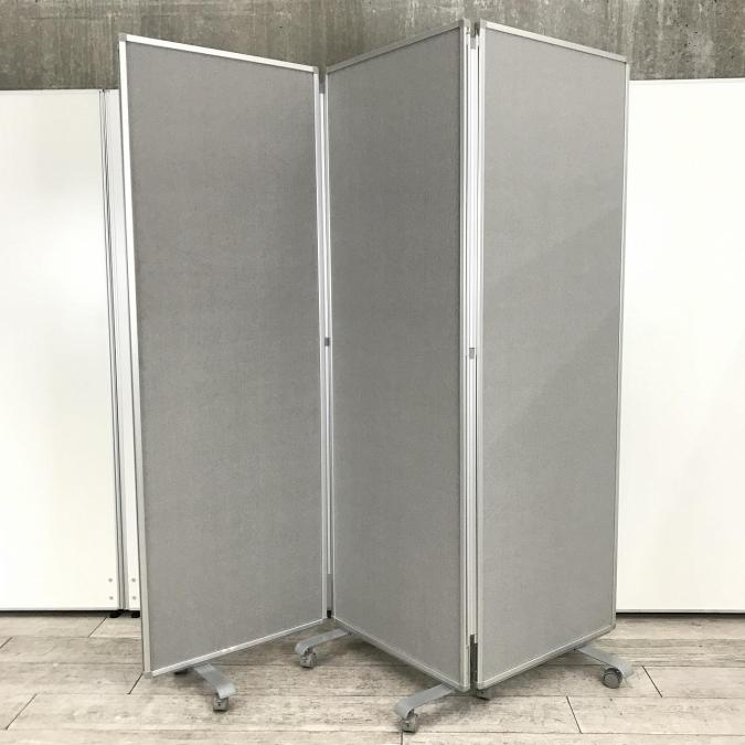 【あると便利な逸品!】■三つ折りパーティション W1860×H1800mm グレー キャスター付 ■W600×3連タイプ 折りたたみパネル- 川崎店