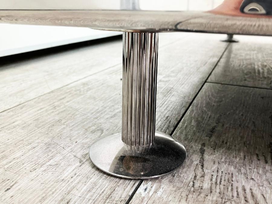 イタリア最高級のインテリアブランド『MATTEO GRASSI(マテオグラッシ)』社製の、センターテーブル『KO』です。 マテオグラッシ社は、1880年に革製馬具製造工場としてスタートしましたが、その技術が高く評価され、B&B、カッシーナ、モルティーニをはじめとした 高名なインテリアメーカーから革製家具パーツの注文を受けるまでになり、1978年には自社独自のコレクションの生産を開始し、 現在では革製家具では世界一とも称されるトップブランドです。