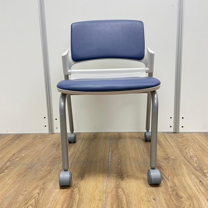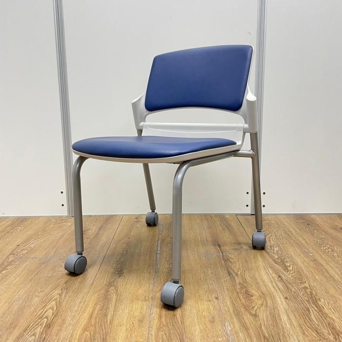 【4脚セット】ウチダ製 MF-180シリーズ ブルーカラー ビニールレザー スタッキングチェア!!- 京都東寺店