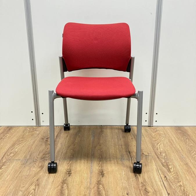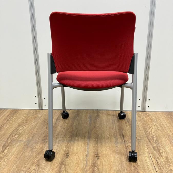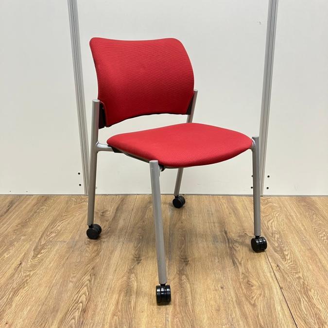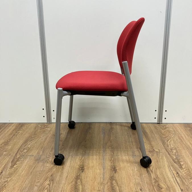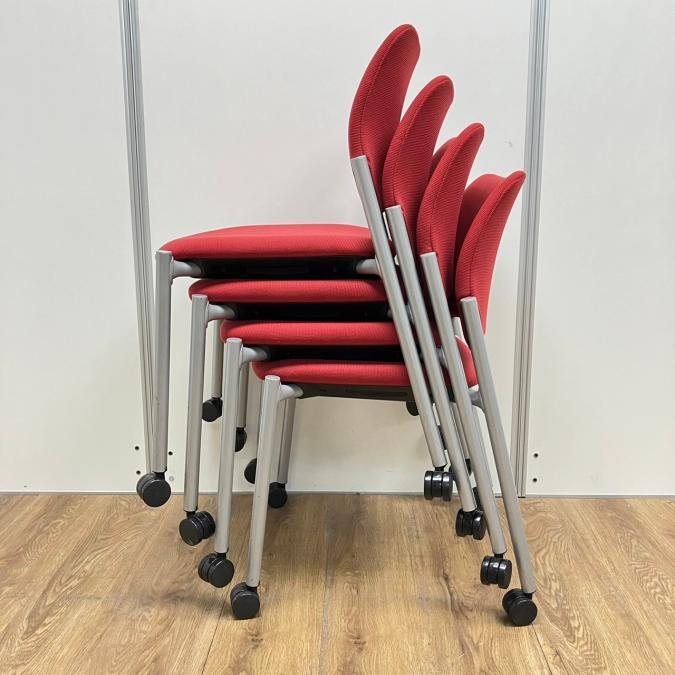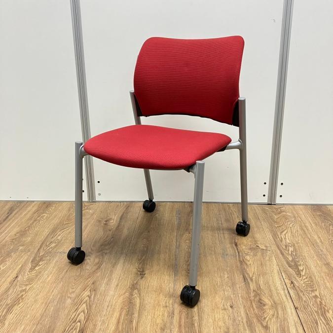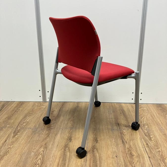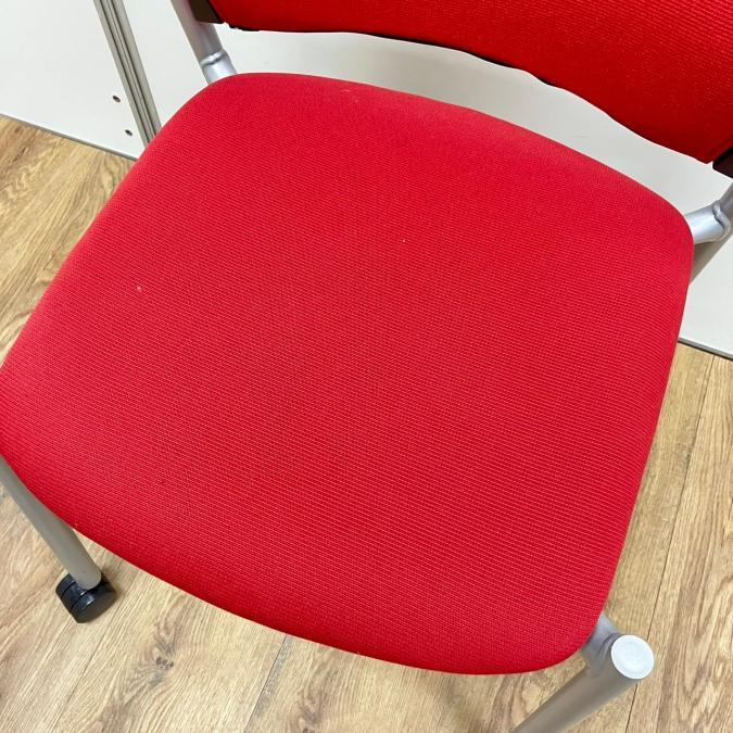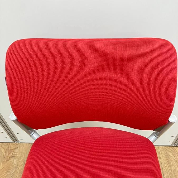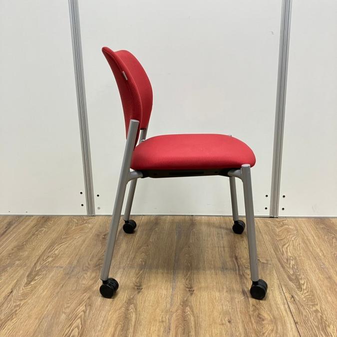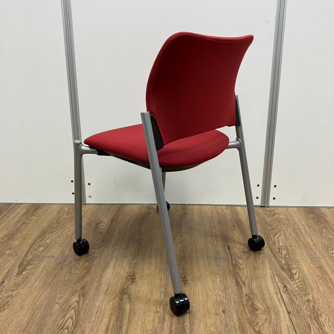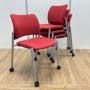 【4脚セット】オカムラ製 8147シリーズ レッドカラー キャスター付き スタッキングチェア!!- 京都東寺店