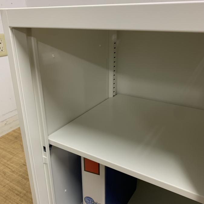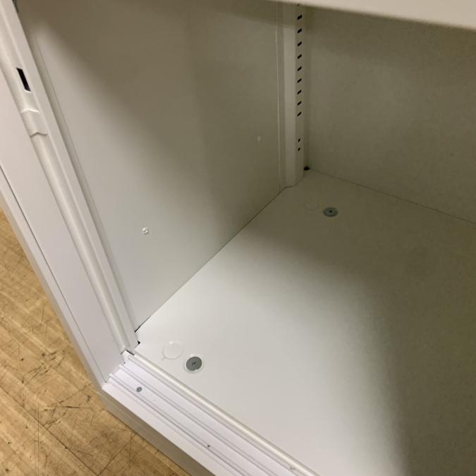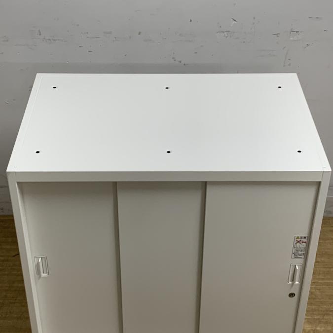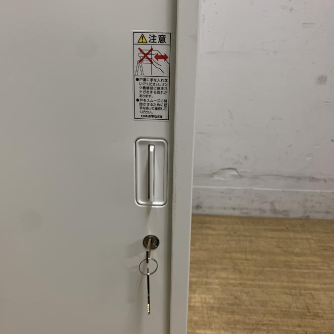 2枚引き戸書庫 オカムラ レクトライン 鍵付き シリンダー錠 ホワイト 天板無し スライド式の扉のため導線を邪魔しません