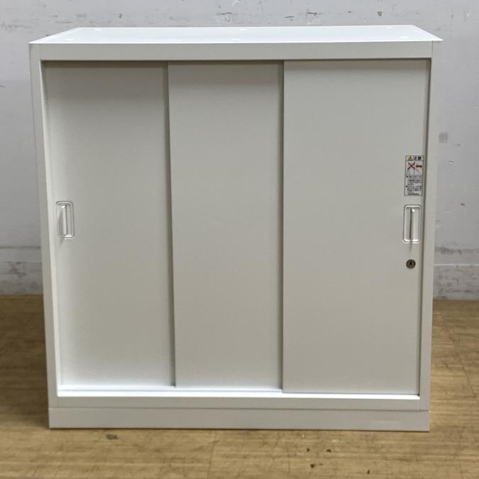 オカムラ製 人気レクトラインシリーズ ホワイト シリンダー W800xD450XH1050 3枚引戸 ※ベースなし 3枚引き違い書庫!!
