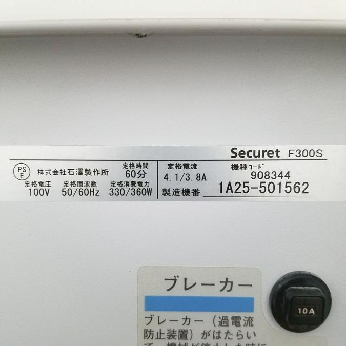 【中古】 セキュレット Securet_F300S 石澤製作所 シュレッダー 465100