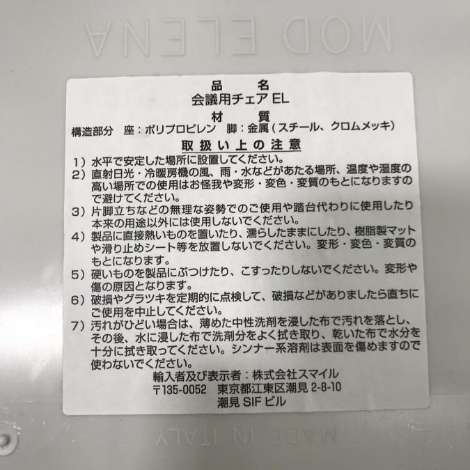 - かなり強い濃い黄ばみ・変色が商品全体にある。(例、座面・背もたれ、脚部等にある。)