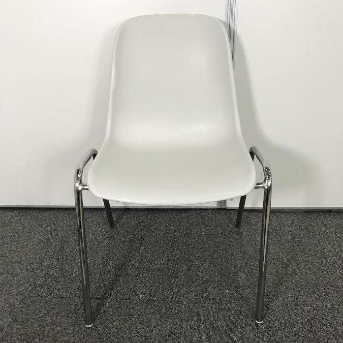 【カフェ調スペースにも!重ねて収納可能!】■スタッキングチェア ミーティングチェア ■肘無し キャスターなし ■ホワイト- 在庫数