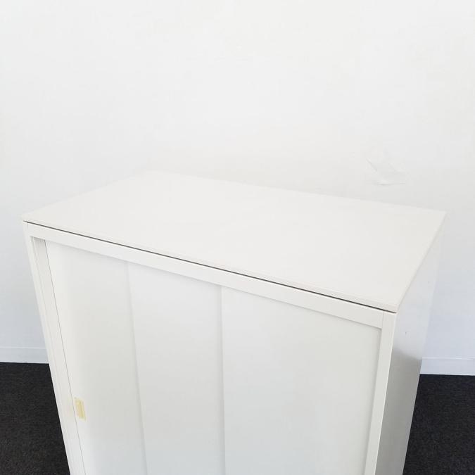 カウンターとしてもおすすめ!使い勝手抜群の天板付き2枚引き違い書庫が入荷! ■オカムラ/レクトライン/ホワイト 2枚引き戸 ホワイト天板付き