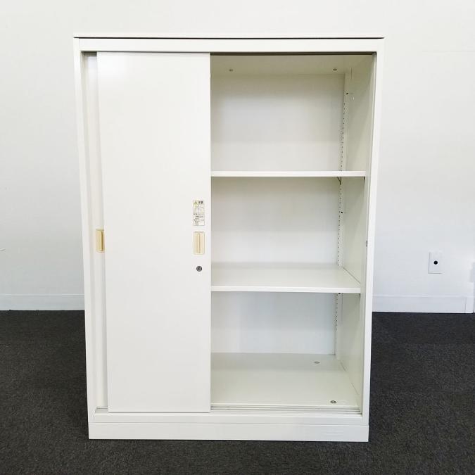 2枚引き戸書庫 オカムラ レクトライン 鍵付き シリンダー錠 ホワイト 天板無し スライド式の扉のため導線を邪魔しません