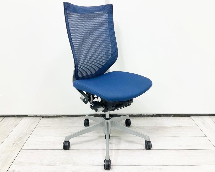 【在庫入替セール品!(本在庫限定価格)】【上質で快適な座り心地!】■オカムラ製 バロンチェア ミディアムブルー シルバーフレーム ■ ベストなポジションが得られる先進設計!★- 川崎店