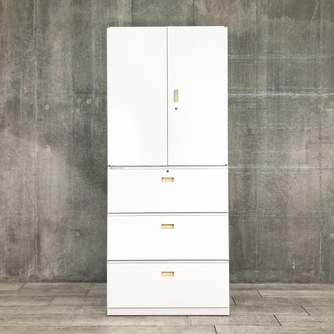【大容量でスッキリ整理!観音開き+3段ラテラル書庫セットが入荷!】■イトーキ (ITOKI)製 シンライン(THUN LINE) ハイキャビネット (両開き+3段ラテラル) ■ホワイト ■シリンダー鍵