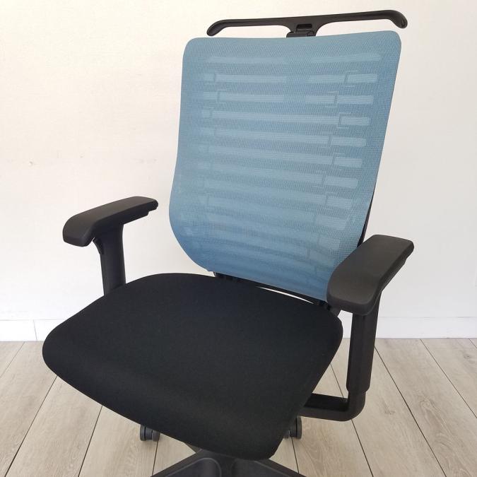 【操作レスで体格にマッチ!】■イトーキ(ITOKI) エピオス (epios) チェア 肘付きエクストラハイバック ■固定肘 背面メッシュ ■ブルー×ホワイトシェル