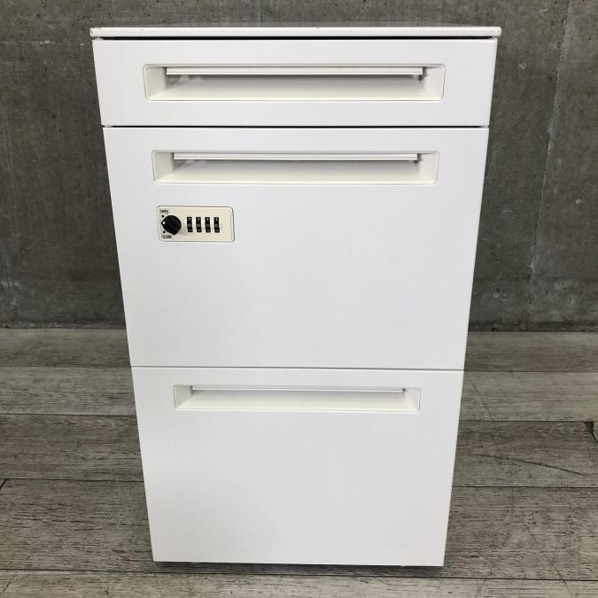【ダイヤル式で鍵をなくす心配無し!】オカムラ(okamura)アドバンスシリーズ 3段ワゴン ホワイト ダイヤル錠 高さ680㎜ ※マスターキーは付属しておりません。【福岡オフィス家具】【福岡中古家具】【中古事務什器】【中古チェア】【中古椅子】- 福岡西店