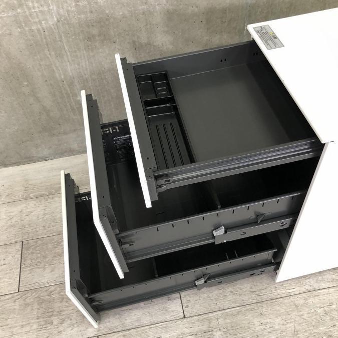 【訳アリ品】【フリーアドレスの必須品!収納とワークスペースの拡張にオススメ!】■オカムラ(okamura)製 アドバンスシリーズ 3段ワゴン フリアド用 ■高さ:680mm ■色:ホワイト ■シリンダー錠 ■取っ手に日焼けがあります!