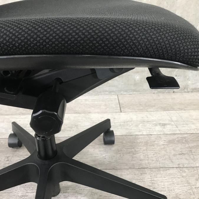 例えば、座面は、イトーキ独自の"ベンディングシート"という機構により、クッション、インターシェル、空洞という三層構造になっています。 この真ん中に挟まっているインナーシェルが、着座時の姿勢に合わせて体重を分散してくれるので、どんな姿勢でも体になじみ、疲労を軽減してくれます。 さらに、座面は前後に4センチほど奥行きを調整でき、前傾姿勢で座りたい、深く腰掛けたい、膝裏を圧迫されたくないなど、個人の好みに合った快適さにカスタマイズが可能となっています。