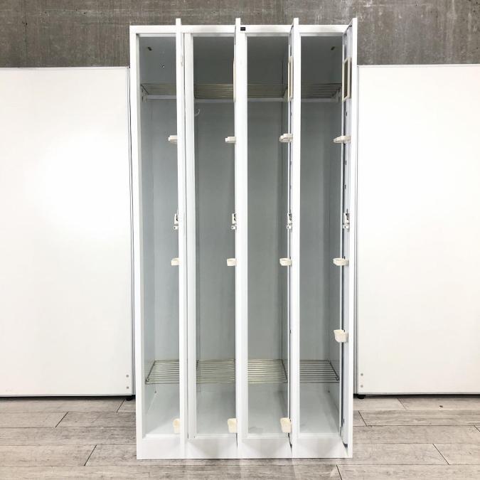 【コート類も入る縦長ロッカー!】【移転や増員を検討されている方にオススメ!】■内田洋行(UCHIDA) 4人用 更衣用ロッカー ■シリンダー錠 ■ホワイト【弊社使用欄:A00961798】- 在庫数