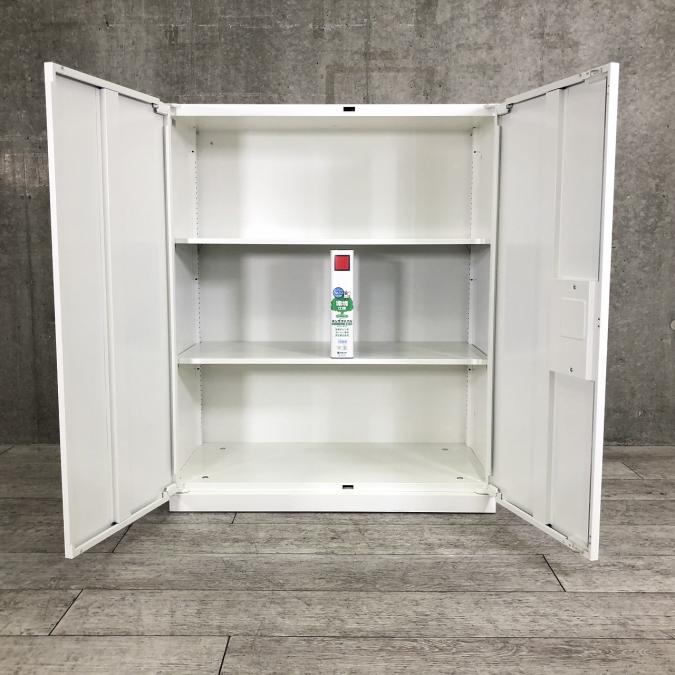 人気のホワイト色、観音開き扉タイプの書庫です。