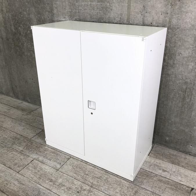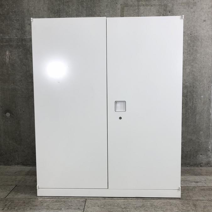 定番サイズ オカムラ/レクトラインシリーズ カラー:ネオホワイト 両開き書庫 鍵付き シリンダー錠 天板無し