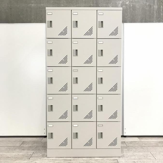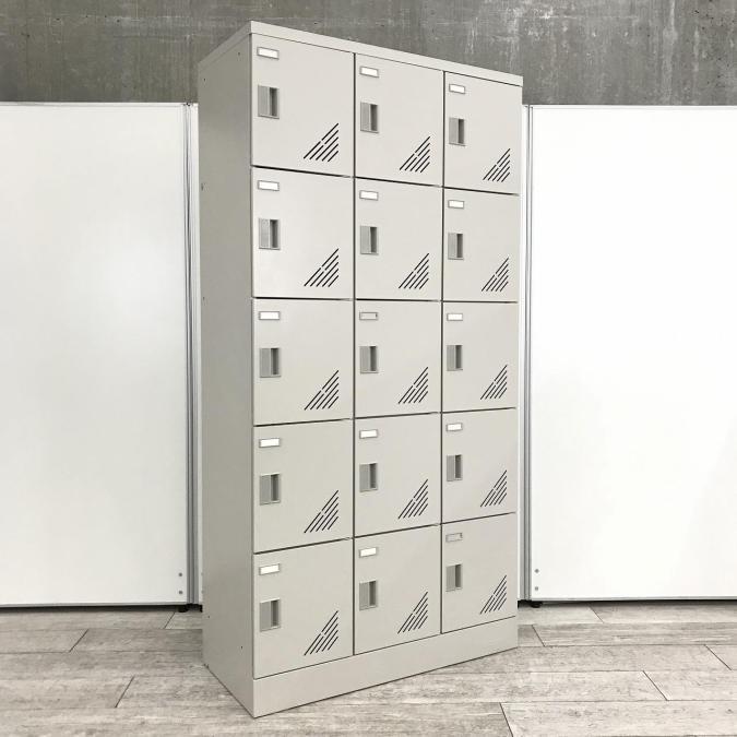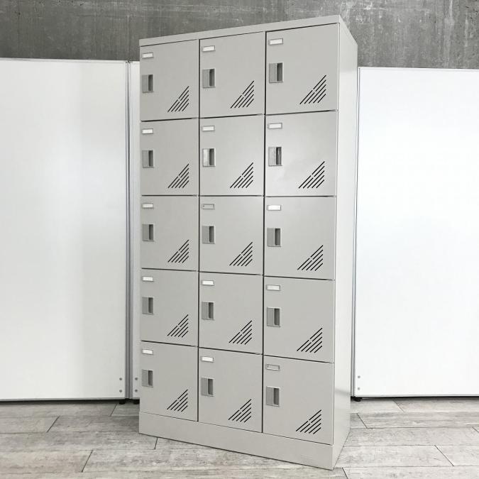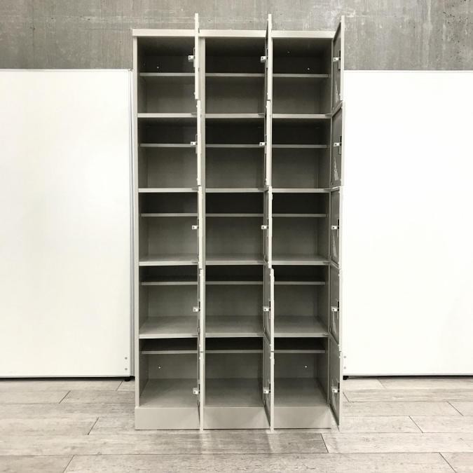 【レアな15人用ロッカー!シューズボックス・小物入れにも!】■オカムラ 15人用ロッカー ■3列5段 ■グレー- 埼玉本店