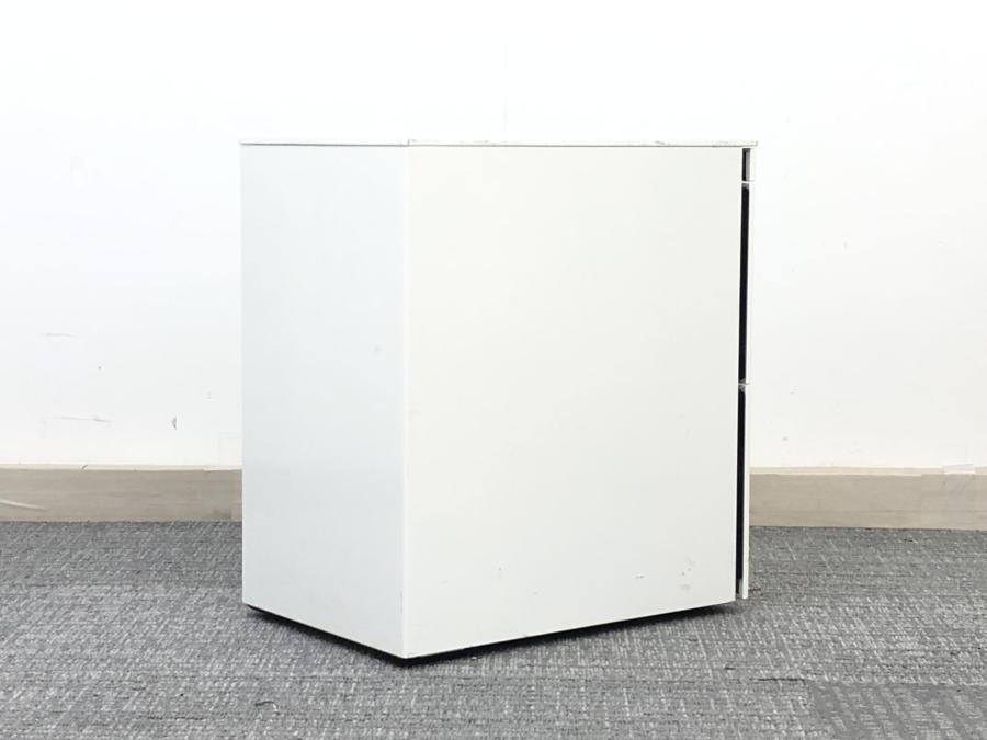 【正面に取っ手が無いフラットなデザイン!キャスター付でレイアウト変更がスムーズ!】■オカムラ(okamura)製 プロユニットシリーズ 3段ワゴン フリアド用ワゴン H650㎜ ■ホワイト ■シリンダー錠 ※キズ・塗装剝がれ有
