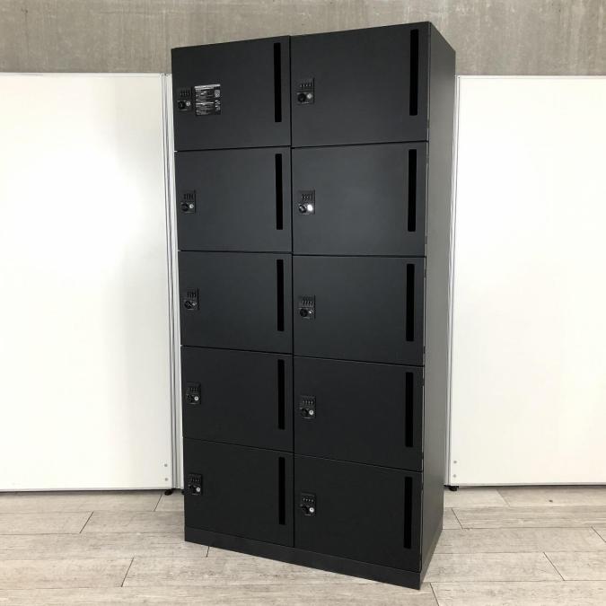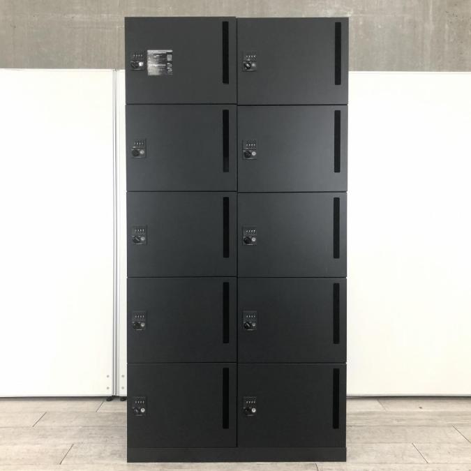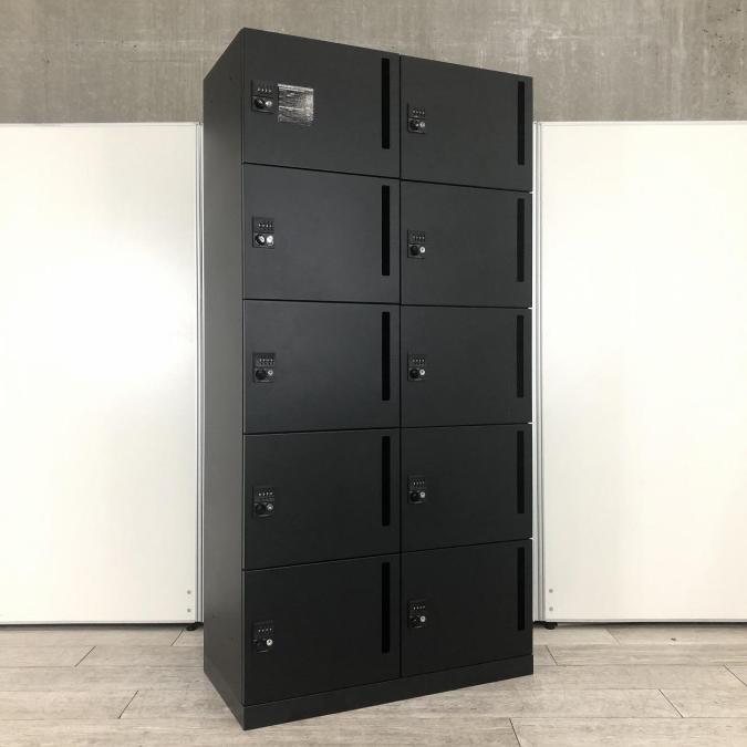 【2021年製!】鍵の持ち運び要らず!人気のダイヤル錠タイプ!デザインと機能を両立した人気商品です!レクトラインロッカーと同じオカムラ製品!シックなブラックカラー! ■オカムラ/モバイル収納シリーズ/ブラック 10人用ロッカー- 立川・八王子店