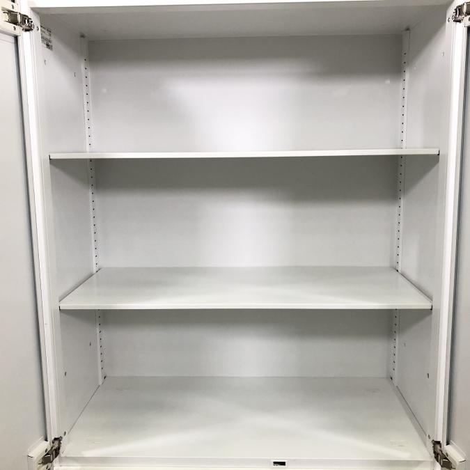 【収納物がひとめで分かる両開き戸タイプ!】■コクヨ(KOKUYO)製 エディア(EDIA) 両開き書庫 ローキャビネット ■ホワイト ■シリンダー錠 ■下置き 【人気のホワイト書庫】- なんば日本橋店