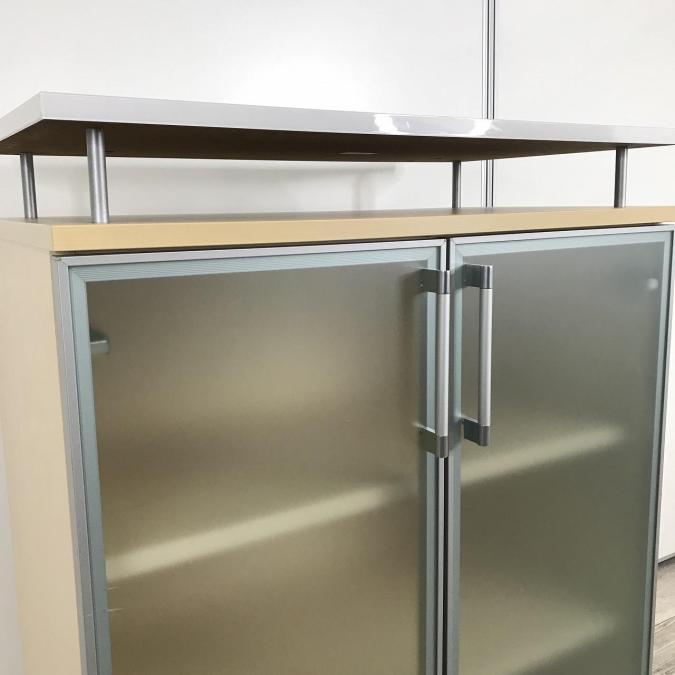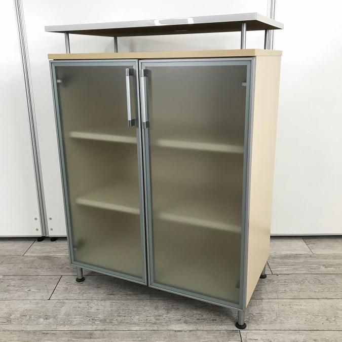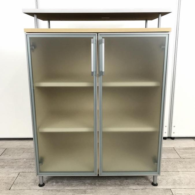 【大きな把手で開閉らくらく!ガラス扉付きの収納ラック】【事務所、学校、オフィスなど様々な場所で活躍】■オカムラ(okamura)アルトコーボウ(Alt KOBO)シリーズ 両開き ガラス扉 ■木目調ナチュラル ホワイト天板【ABW商材】【関東倉庫在庫品】【弊社使用欄:A00962587】- 全店共通商品