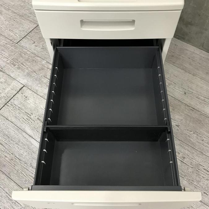 大・中・小と深さの違う3段の引出しで、文房具からファイル書類まで、用途別の収納が可能です。