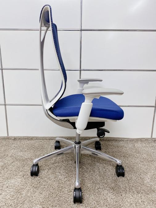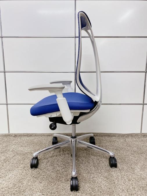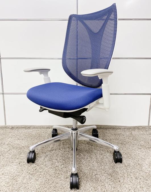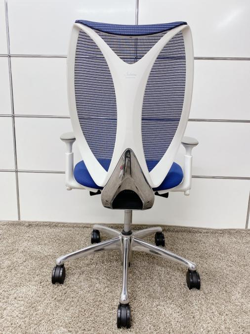 【前傾チルト付!流れるような美しいフォルムの最高級メッシュチェア!】■オカムラ(okamura)製 Sabrina(サブリナ) ハイバック 肘付き ■可動肘 ■背面メッシュ:アクアブルー 座面:ブルー ホワイトフレーム