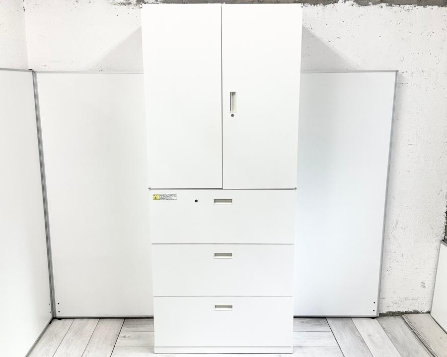 ★【新品】【メーカー在庫品】ウチダ 製 BEストレージ ホワイト 高さ2150サイズ シリンダー オフィス書類をたっぷり収納できる、人気の書庫セット 両開き+3段ラテラル 上下書庫セット!オフィスバスターズ 梅田本店