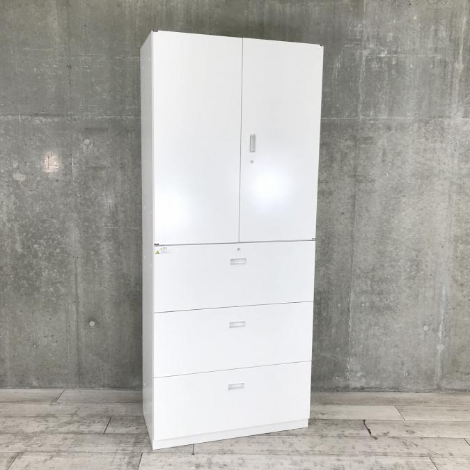 【大容量でスッキリ整理!観音開き+3段ラテラル書庫セットが入荷!】■イトーキ (ITOKI)製 シンライン(THUN LINE) ハイキャビネット (両開き+3段ラテラル) ■ホワイト ■シリンダー鍵