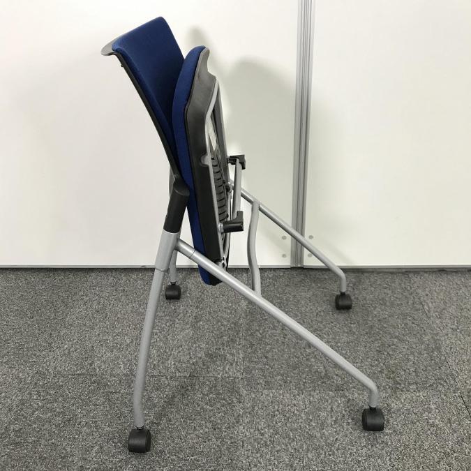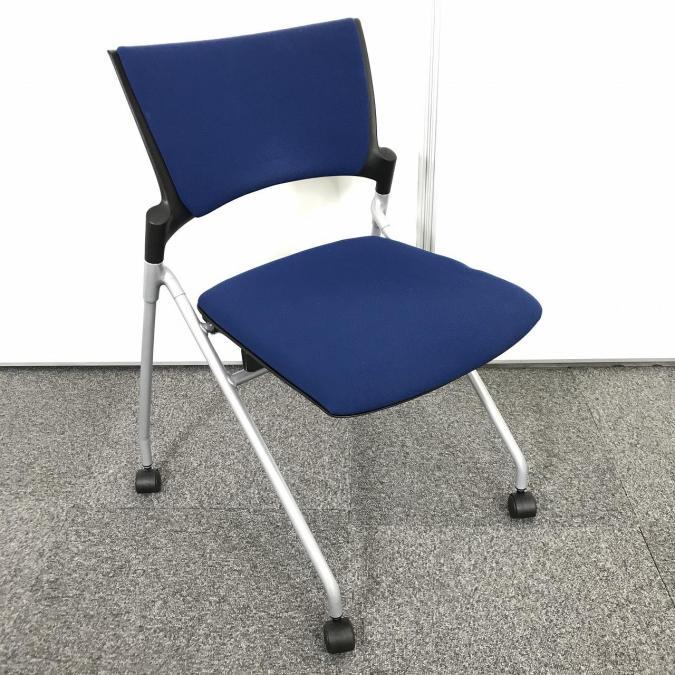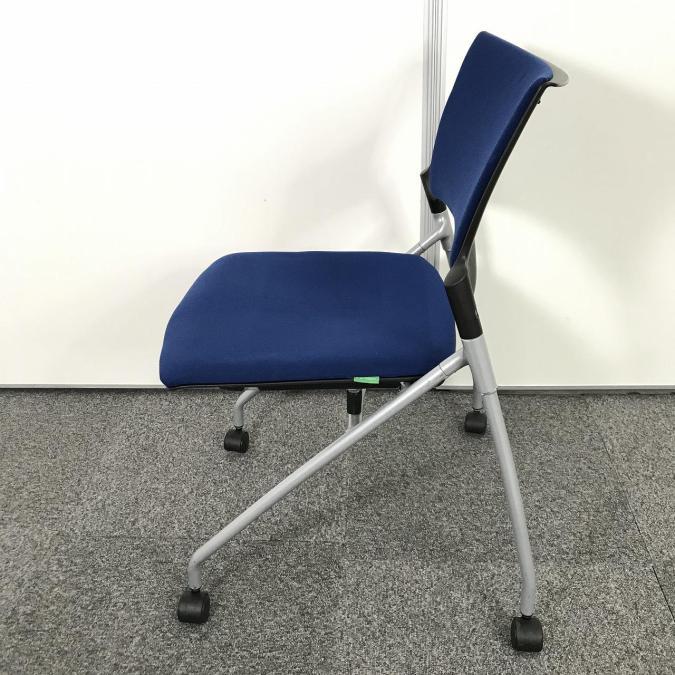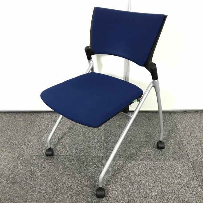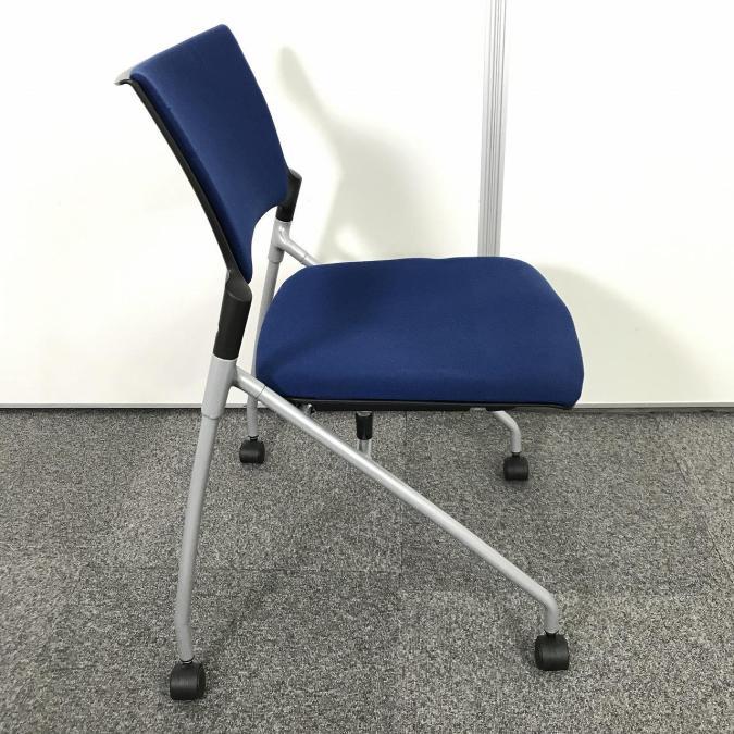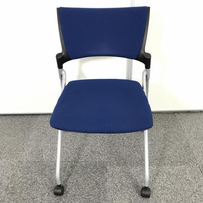 【人気のネスティングチェア!ミーティングスペースに是非!】■イトーキ マノス ネスティングチェア ■肘無し キャスター付き ■ストロングブルー- 池袋店