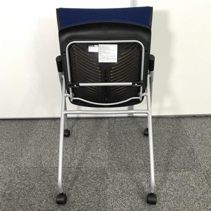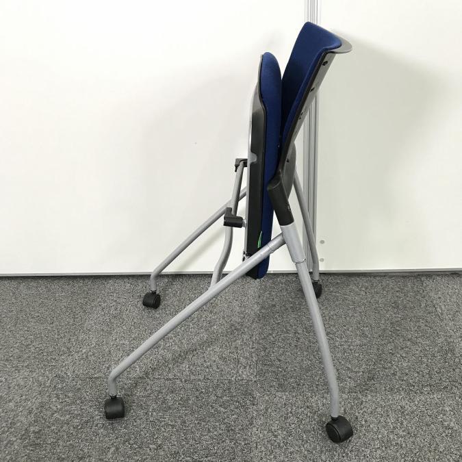 【セミナーや会議用にオススメ!平行ネスティングで省スペース化!】■イトーキ製 マノス ネスティングチェア ■背パッド付 キャスター付き ■ネイビーブルー オフィスバスターズ心斎橋店 ロット在庫