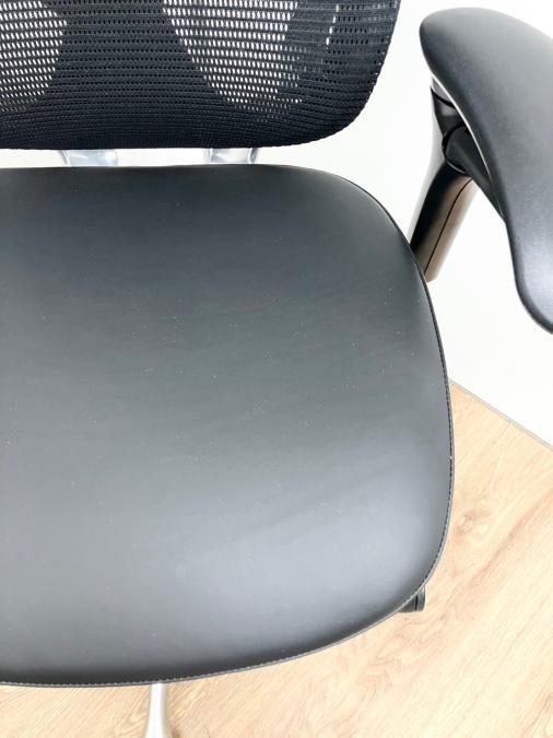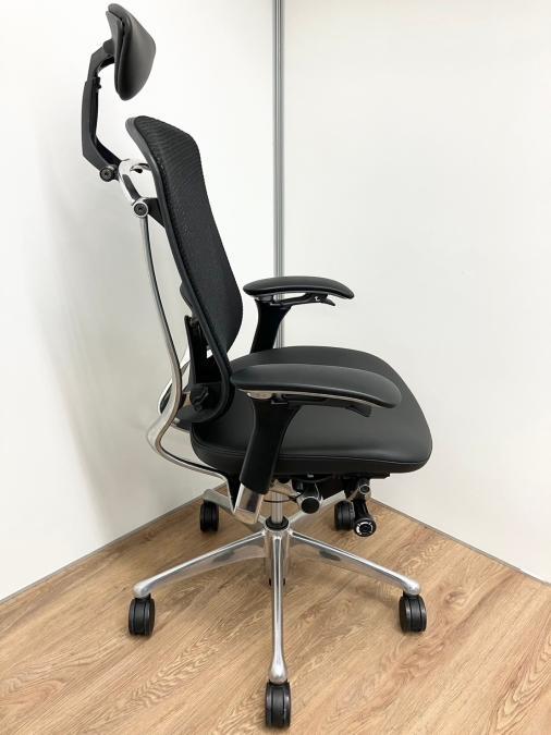 【1脚入荷!】■オカムラ(okamura)製 コンテッサハイバック座面革張り仕様 肘付き ■可動肘 背面メッシュ ■ランバー付き ■小型ヘッドレスト付き ■ブラック【2501】弊社使用欄【A00994872 A01004800】