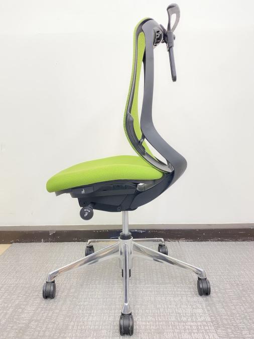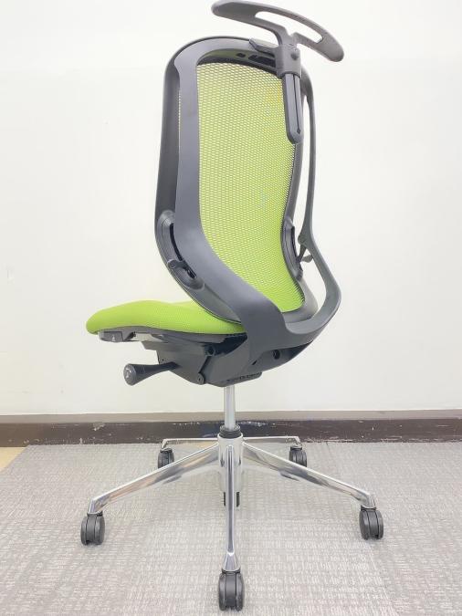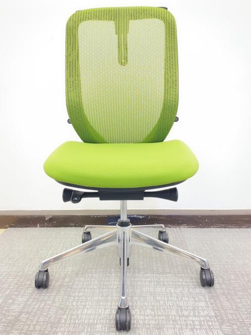 【在庫入替セール品!(本在庫限定価格)】【背のカーブを変えられる!新感覚のオフィスシーティング!】■オカムラ シルフィーチェア ライムグリーン ハンガー付 ブラックボディ アルミポリッシュ脚 ■三次元曲面が快適にフィット!- 川崎店