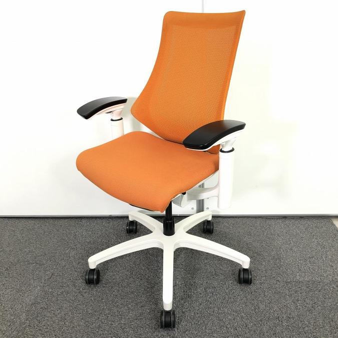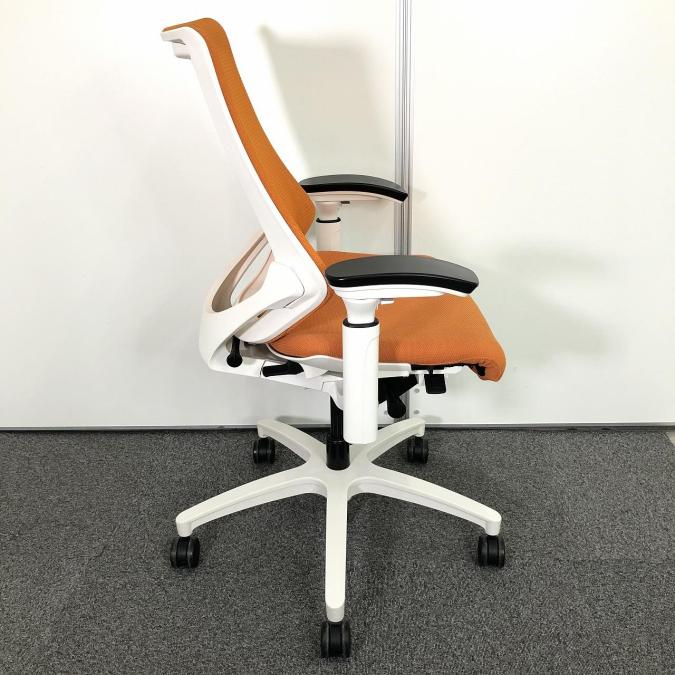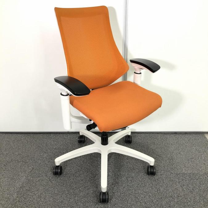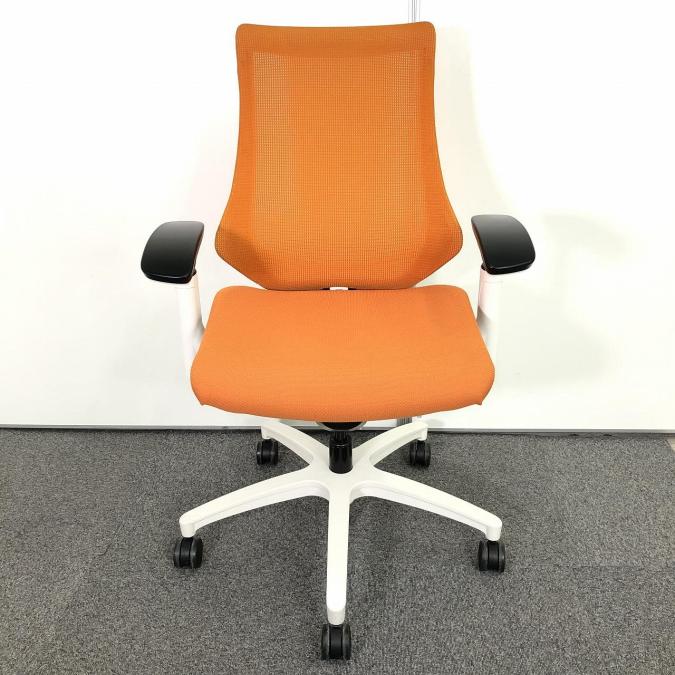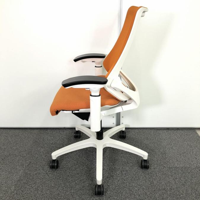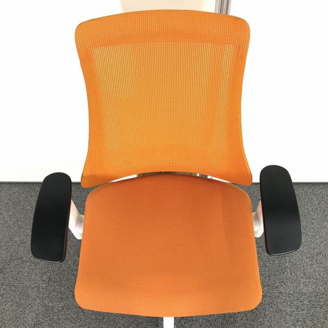 【使いやすいメッシュチェア】イトーキ エフチェア メッシュ 可動肘付き オレンジ×ホワイトフレーム 【弊社使用欄:A00958943】- 在庫数