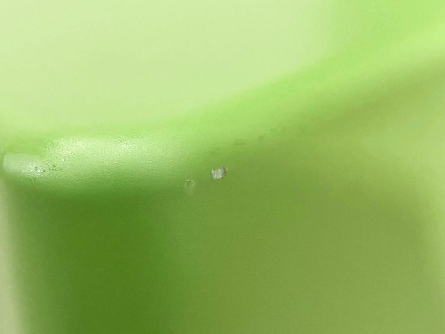 - かなり強い濃い黄ばみ・変色が商品全体にある。(例、座面・背もたれ、脚部等にある。)