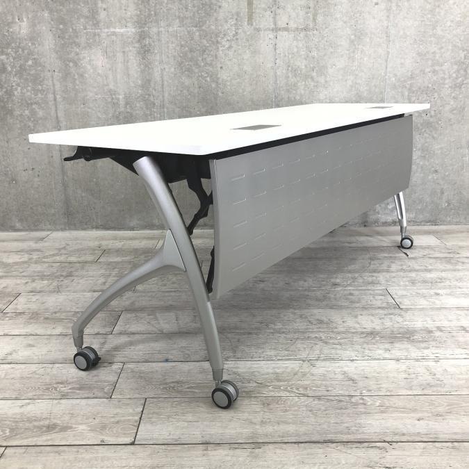 【キャスター付きのため、移動もラクラク!】広々使える折り畳み式テーブル ■イトーキ製|幕板付き|W1800 D600 リリッシュ2【入れ替えセール品】- つくば店
