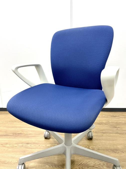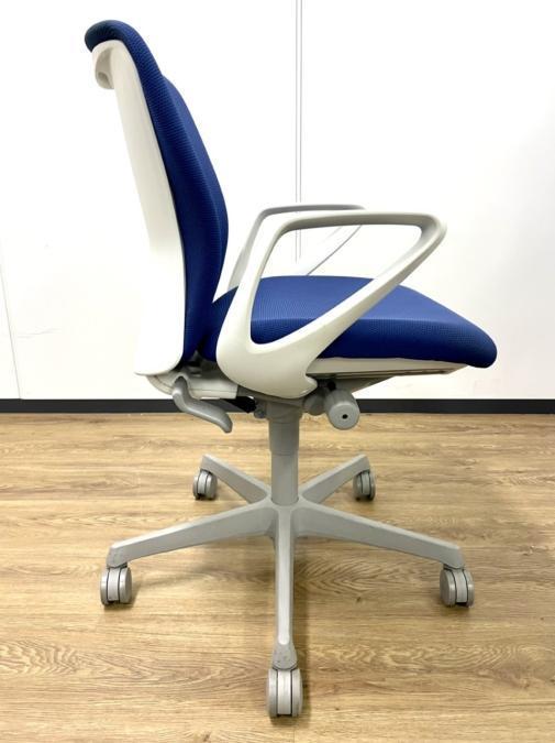 オカムラ製スラートチェア!! ローバック固定肘付き!ブルーの座面!長時間座っても疲れにくい!!- 在庫数