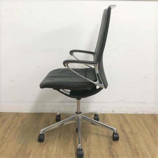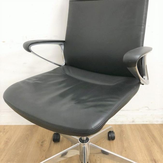 【会議室やモダンなオフィスの執務用として人気のチェア!レザータイプが入荷!】■オカムラ(okamura) モードチェア(mode) 肘付き ハイバック ■張地:レザー 色:ブラック ■デザインアーム