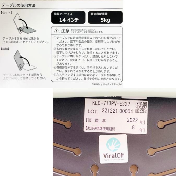 - 目立つ箇所あり傷・破れ・ほつれ・へたり・しわが多数または深い傷・破れ・ほつれ・へたり・しわが一部ある。※座面・背もたれ、シェル、脚部等にある。