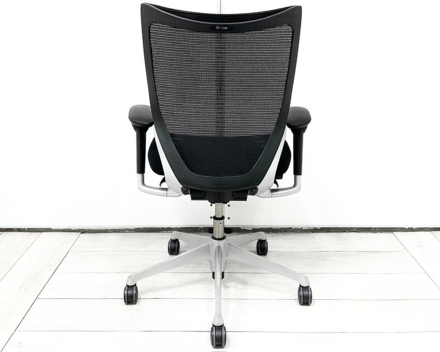【国産メッシュチェアの代表格!オフィスの執務室、会議室におすすめ!】■オカムラ(okamura)製 バロン(Baron)チェア 肘付 ローバック 背面メッシュ ■固定肘 ■ブラック×ホワイトシェル【IB】