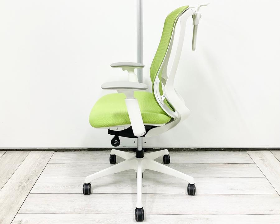 【前傾チルト機能付き!オカムラ製品で最も人気を集める高機能メッシュチェア!】■オカムラ(okamura)製 シルフィ(Sylphy)チェア ハイバック ■可動肘・ハンガー付き ■ライムグリーン × ホワイトシェル