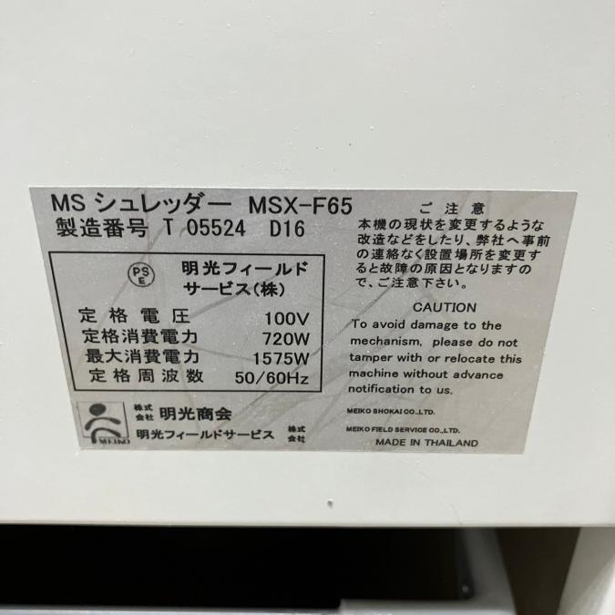 明光商会製 MSX-F65シリーズ 高性能 新品時※最大細断枚数65枚!! セキュリティ性の高いパワークロスカット 業務用シュレッダー!!- 京都東寺店