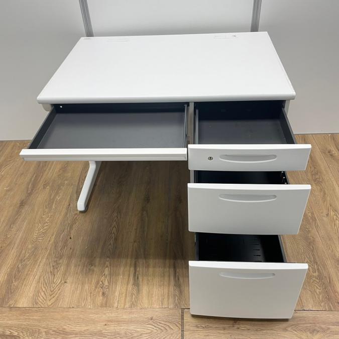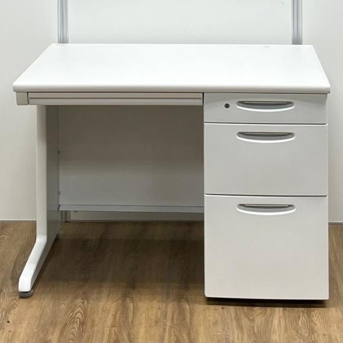 【商品入替のため、残り1台限り】オカムラ製 SD-Vシリーズ ホワイトカラー W1000サイズコンパクト 袖一体型で書類をたっぷり収納可能 片袖机!!- 京都東寺店