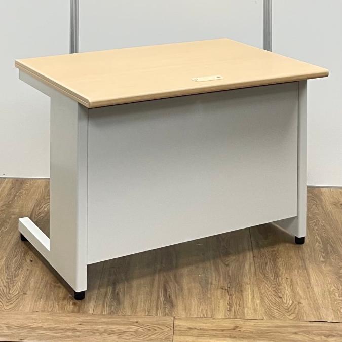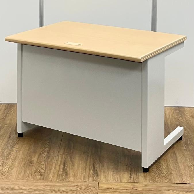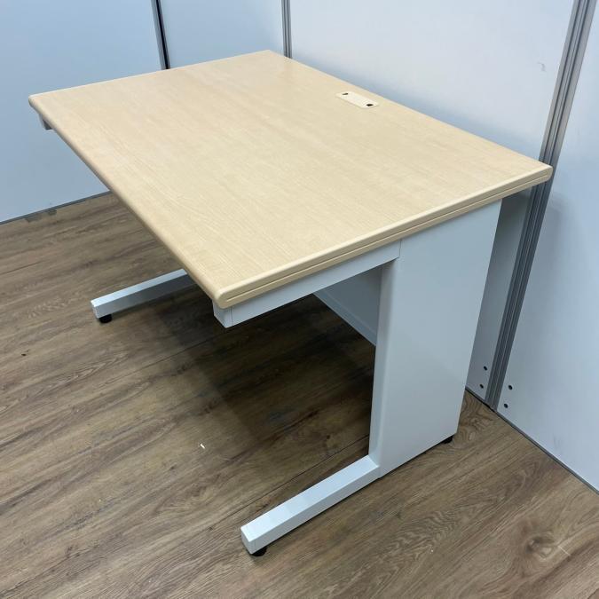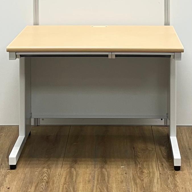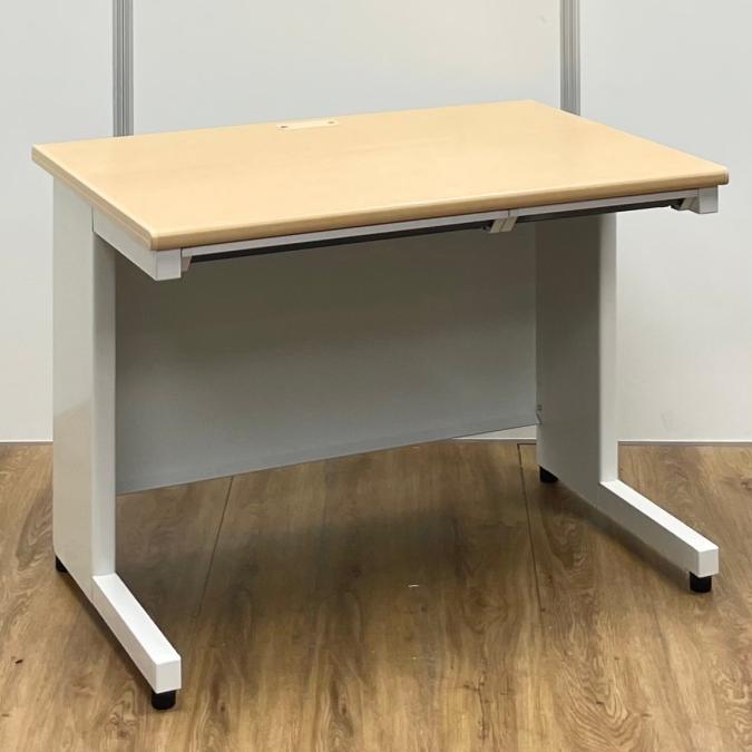 【商品入替のため、残り1台限り】】プラス製 フラットラインシリーズ 木目ナチュラル天板×ホワイト コンパクトサイズ W1000サイズ 平机!!- 京都東寺店