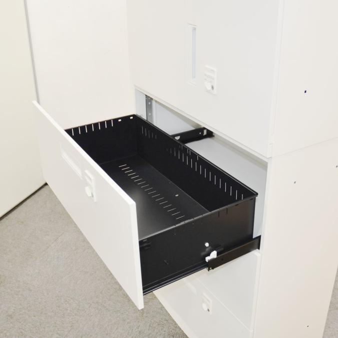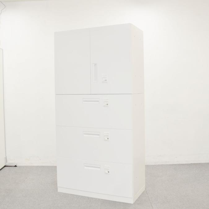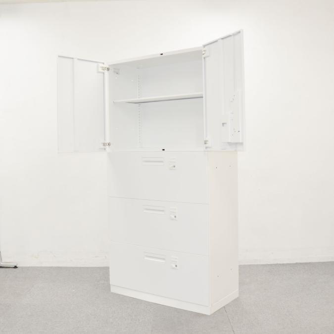 【収納量抜群の書庫セット!観音開き+引き出しタイプの人気の組み合わせ!】■コクヨ(KOKUYO)製 エディアシリーズ(EDIA) 両開き+3段ラテラル 書庫セット ハイキャビネット ■シリンダー錠 ■ホワイト