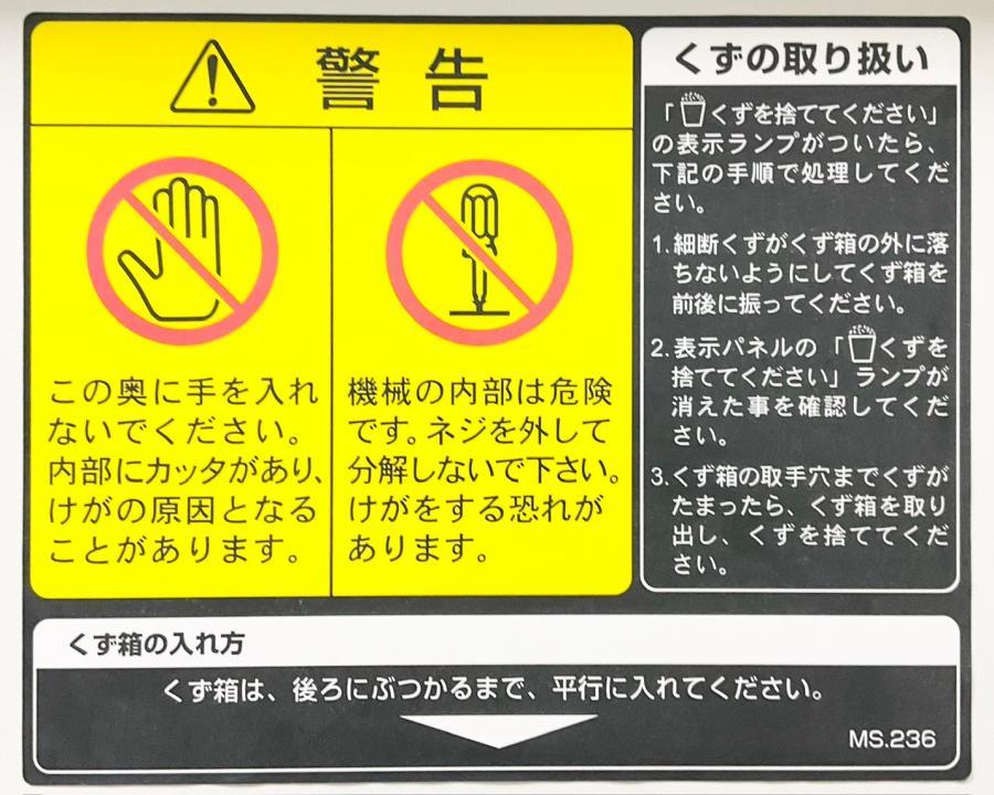 | 屑収容量 | 約76リットル 約2,500枚 |