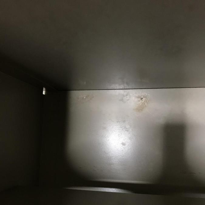- かなり強い黄ばみ・変色が商品全体にある。(例、天板、正面、背部、サイド部分にある。)