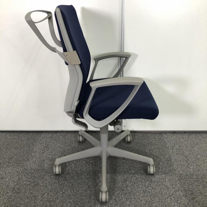 【オフィスの定番チェア!起業や入替に!】■okamura(オカムラ)製 ESCUDO/エスクードチェア 肘付ハイバック ■ダークブルー ■固定肘 ■ランバー付 【長時間のデスクワークもランバーが快適にサポート!】【入替セールにつき20%OFF!】
